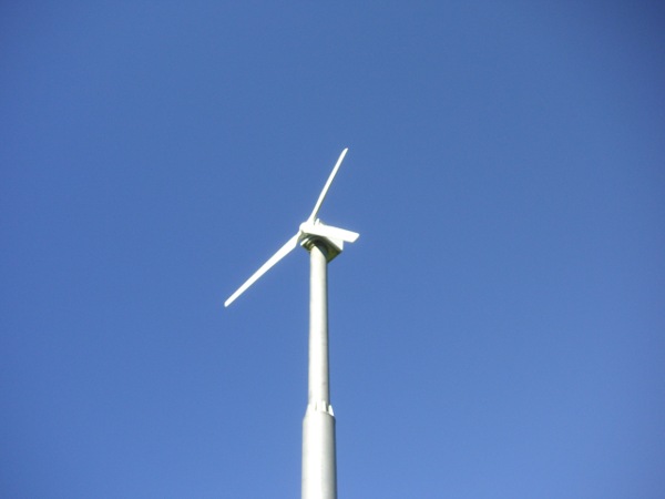 Mit diesen Informationen ging es nun auf eine Besichtigungsfahrt: Zuerst besuchten wir eine private Windenergieanlage. Von Herrn Martin Thuli, dem Liebhaber-Betreiber und technischen Betreuer, wurden wir über Leistung, Bau sowie spezielle Kuriositäten seiner Windenergieanlage aus Dresden informiert. Wie etwa der Tatsache, dass handelsübliche Anlagen der Windsituation vor Ort nicht gewachsen sind und es schon vorkam, dass ein Rotorblatt oder sogar der ganze Rotor im benachbarten Feld eingesammelt werden mussten.